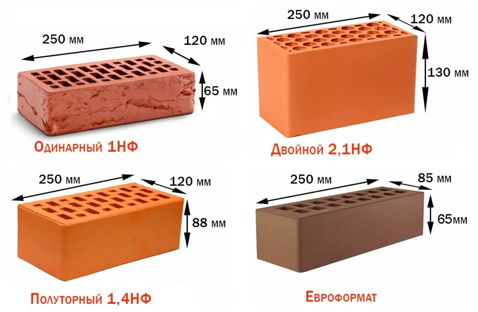 Профессиональные каменщики для обозначения разных видов кирпича используют их типоразмеры. Исходя из этого критерия различают: