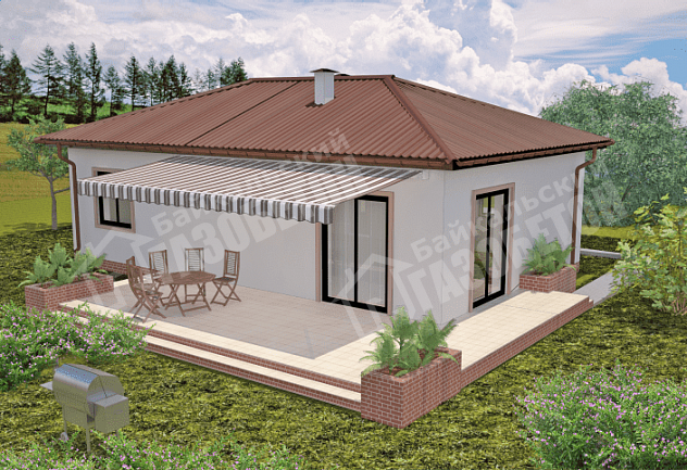 Уютный одноэтажный дом площадью в семьдесят шесть квадратных метров. Просторная кухня-гостиная с панорамными окнами подойдет радушным хозяевам, имеется возможность пристроить отличную террасу, устроив в одном из окон гостиной балконную дверь. Ванная комната позволит разместить не только душевую кабинку, но и джакузи. Большая спальная комната при необходимости может быть поделена на две отдельных спальни.